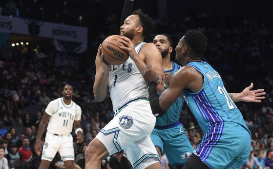 籃球直播吧12月2日訊 NBA常規(guī)賽,客場(chǎng)作戰(zhàn)的明尼蘇達(dá)森林狼以123-117擊敗夏洛特黃蜂,森林狼取得4連勝。戈貝爾26分12籃板1助攻,羅齊爾23分6籃板7助攻。